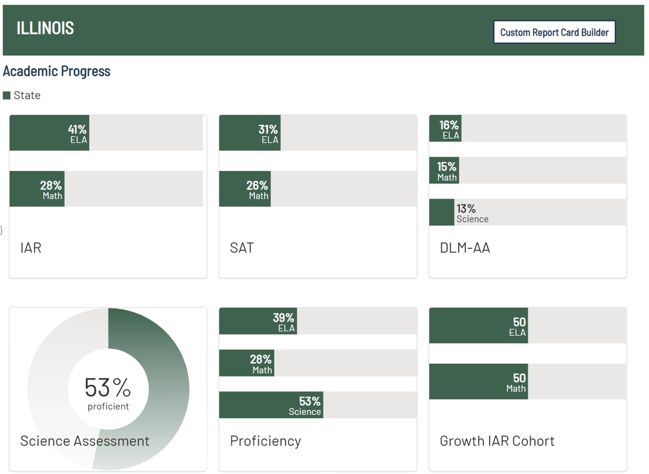 Parents Beware – More Dubious Moves By IL EducratsThe elitists in the education bureaucracy are monkeying with the state standards that measure proficiency. Since 2019, the number of students who score as “meets or exceeds proficiency” has not increased in 3 out of 4 tests and only slightly increased in one.The state measures proficiency in math and reading at the elementary level using the Illinois Assessment of Readiness (IAR) and at the high school level using the SAT. This chart from the Illinois State Board of Education Report Card shows the overall state-level proficiency over the years in the IAR test for English Language Arts.