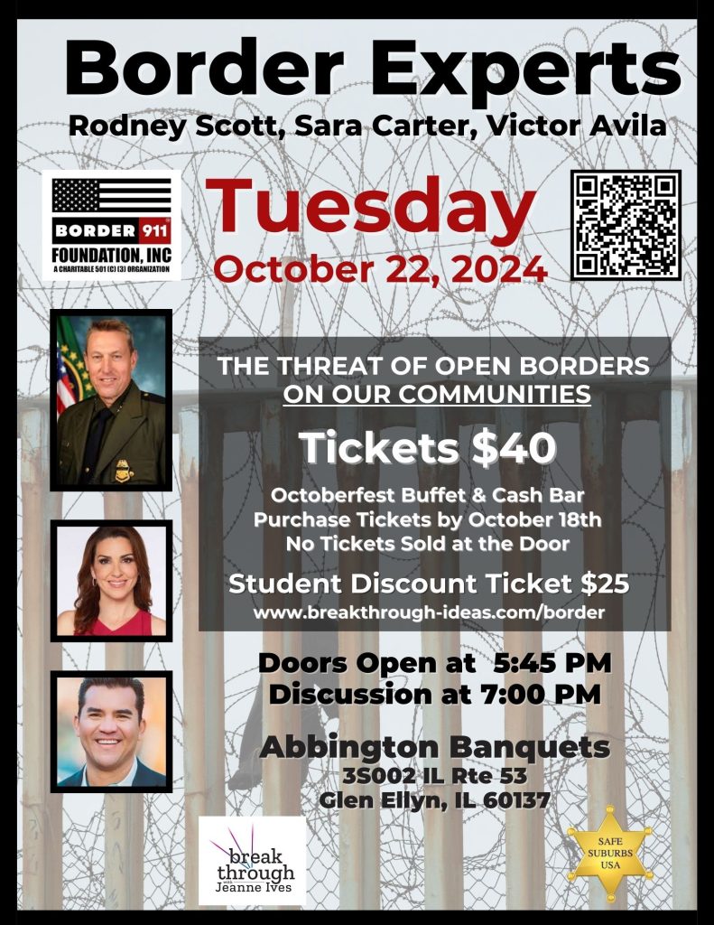 Join us to hear from Border Experts: Rodney Scott, Sara Carter & Victor Avila on Tuesday, October 22nd at 6:00 pm. (Doors Open at 5:30)