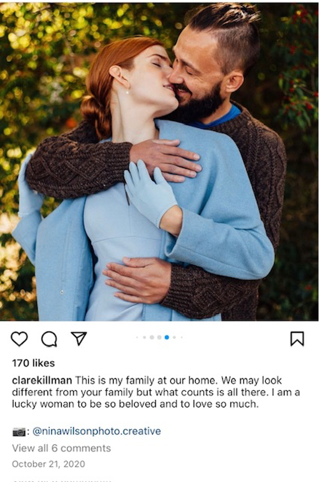 As of Oct. 2, 2021, the two mister Killmans were in a “throuple” with a third man. About that relationship, “Clare” Killman wrote this on Oct. 21, 2020, to accompany Instagram photos of the three men in various combinations holding hands and embracing: