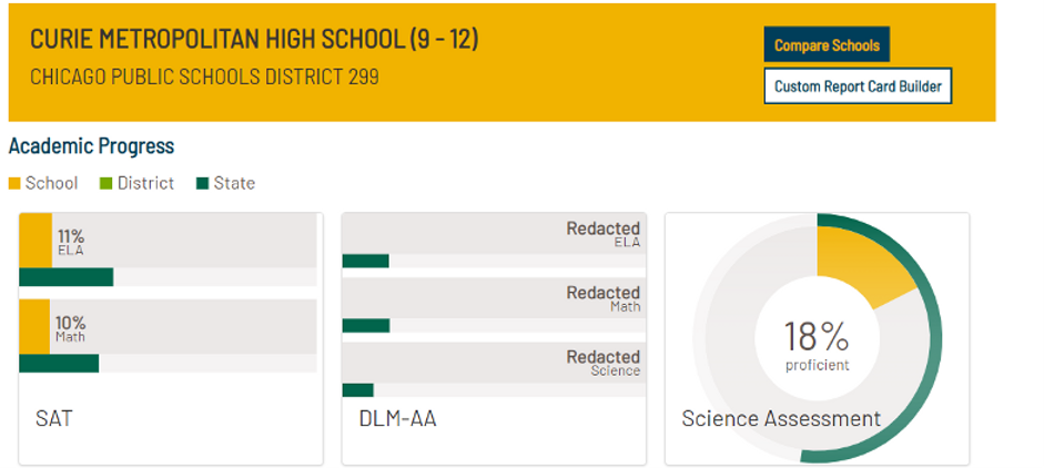 What Pritzker Left Out – According to ISBE data, at Curie High School, only 11 percent of students can read at grade level, and only 10 percent can do math at grade level. https://www.illinoisreportcard.com/School.aspx?source=trends&Schoolid=150162990250617