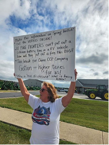 At Breakthrough Ideas, we have been in contact with a local group opposed to the Gotion deal. And one concerned citizen sent us this photo from the protest during the press conference announcing the deal.