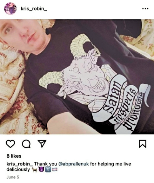 The shirt he is wearing is one of the products by the cross-dressing woman/Satan worshipper that got Target into some hellishly hot water in June.